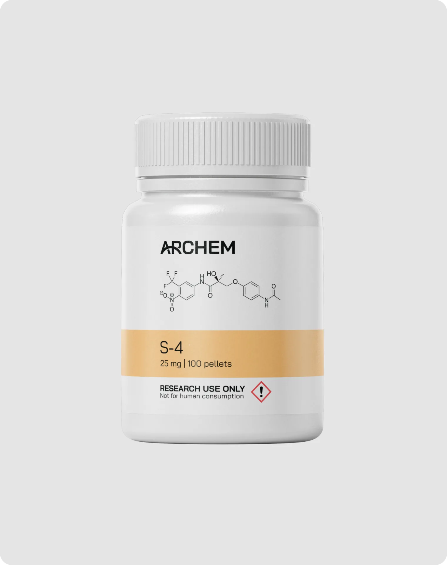 Andarine, also known as S-4, is a selective non-steroidal Androgen Receptor Modulator (SARM) developed for the treatment of muscle wasting diseases, osteoporosis, and benign prostatic hypertrophy (BPH). Originally researched by GTX Inc., Andarine exhibits tissue-selective anabolic activity, making it a valuable tool in studies involving muscle preservation and skeletal health. S-4 has been characterized by its strong binding affinity to androgen receptors and its ability to activate anabolic pathways in muscle and osseous tissue with reduced activity in reproductive-associated organs. It was also investigated for its potential to partially suppress prostate growth without reducing muscle mass — a unique profile among SARMs.