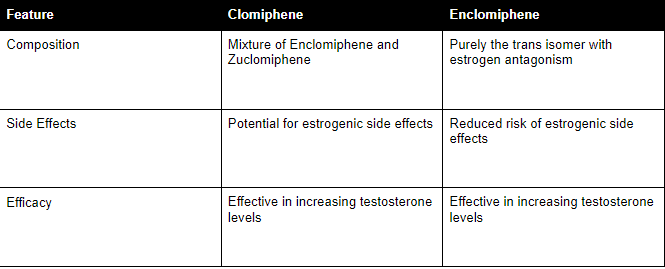 Clomiphene contains both E and Z isomers. The Z-isomer (zuclomiphene) may counteract desired anti-estrogenic effects. Enclomiphene gives cleaner, more predictable results.